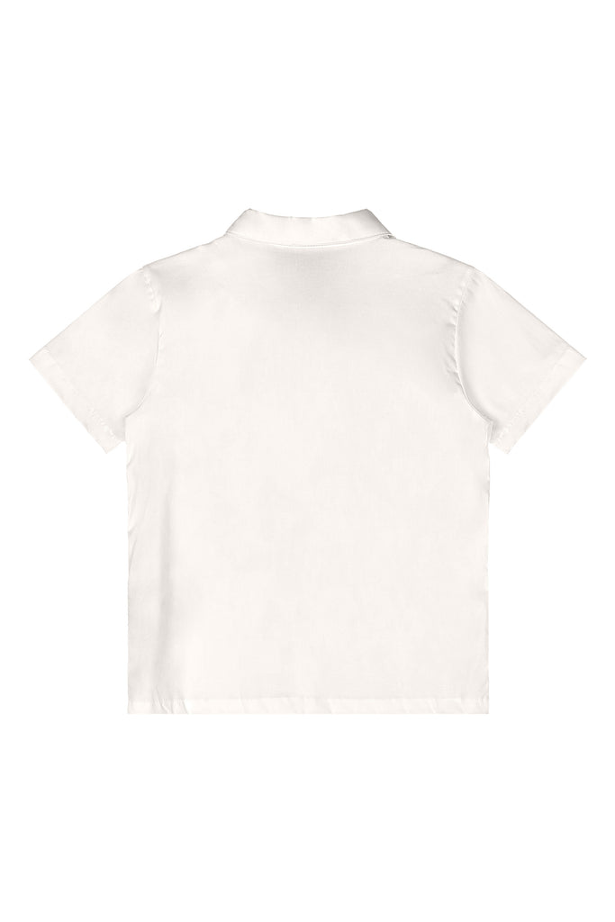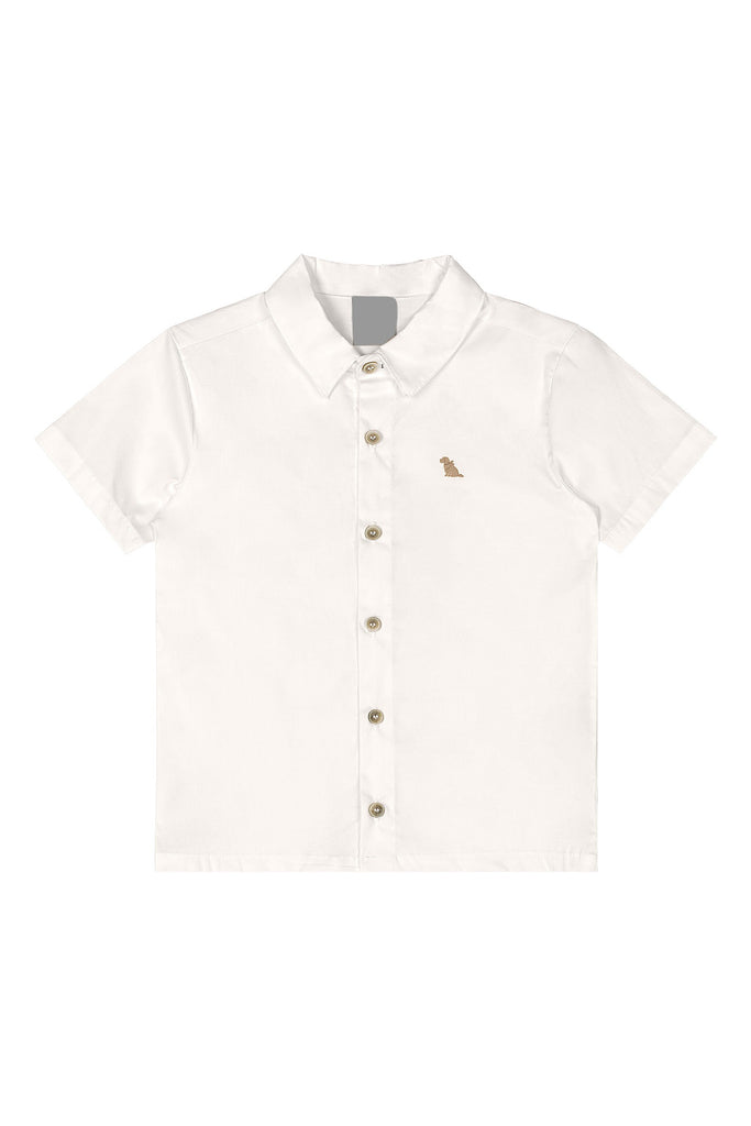 - white button down woven shirt + beige stripe woven bermuda