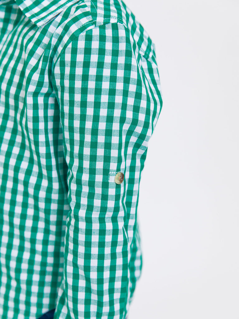 Emerald Green Gingham Long Sleeve Button Down Shirt