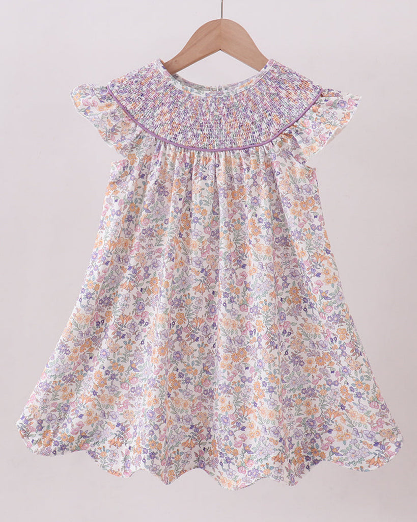 - Delicate blooms dance across soft fabric while charming ruffles frame the neckline and sleeves.