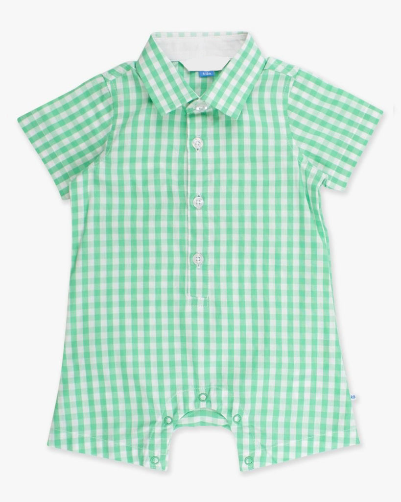 Gingham Woven Button-Up Romper