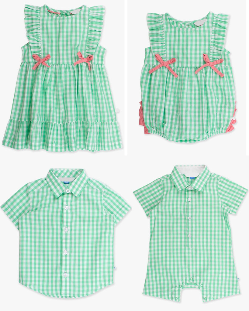 * Matching baby girl romper, button-up baby boy romper and button-down shirt for brother is available.