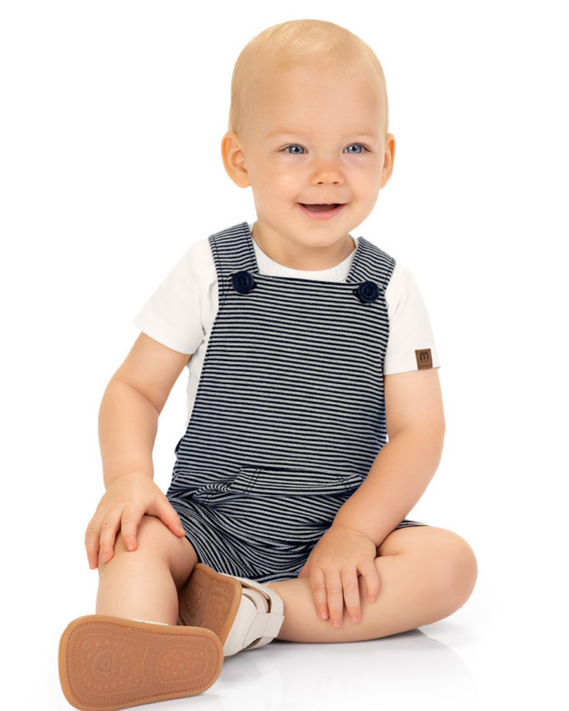 Navy Striped Overall Set